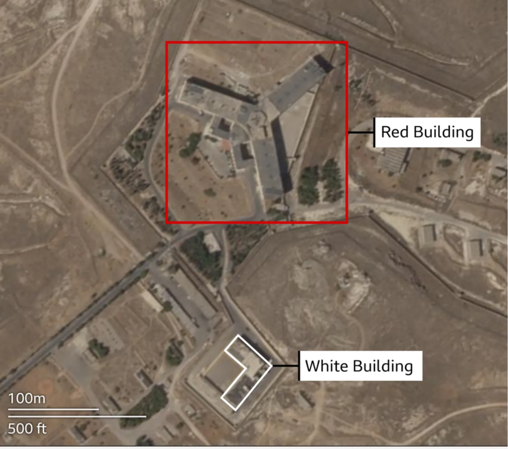 Once fully operational the prison contained two main detention facilities. The White Building was, according to rights groups, mainly built to hold military officers and troops suspected of being disloyal to the regime. It was an L-shaped complex in the south-east of the sprawling complex.
